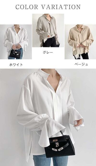 シャツ ブラウス レディース シャツブラウス トップス バルーン袖 シフォン 前開き Vネック ゆったり オフィス 通勤 OL おしゃれ 大人 エレガント 七分袖 ボタン デザイン感 春 夏 秋 着痩