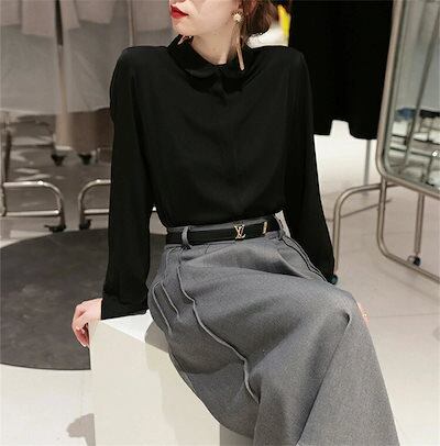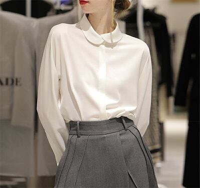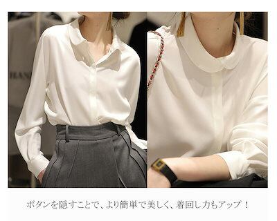 長袖シャツ ブラウス レディース 春 夏 シャツ シャツブラウス 丸襟 長袖 長袖ブラウス シャツ トップス シャツブラウス 長袖トップス 白シャツ デザイン スーツ インナー ボタン隠し 前開き ボ