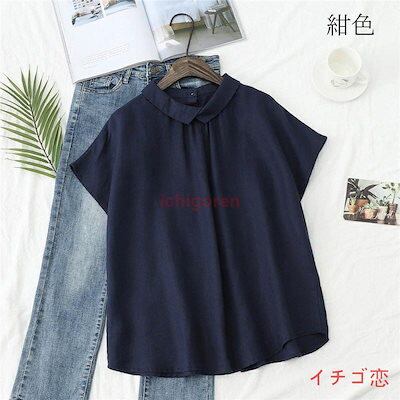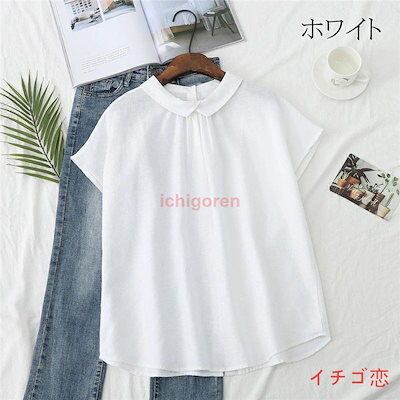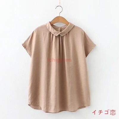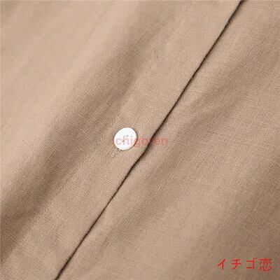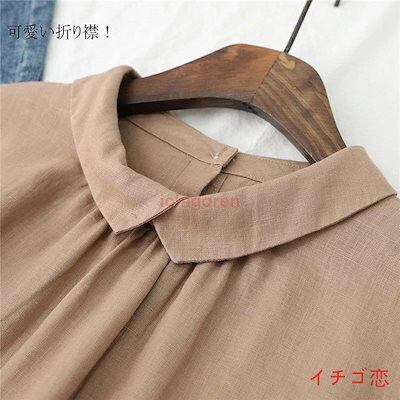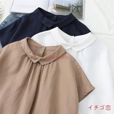 麻 ブラウス シャツ レディース 綿麻シャツ トップス シャツブラウス リバーシブル 夏 フレンチスリーブ 綿麻 リネン 無地 折襟 後ろボタン
