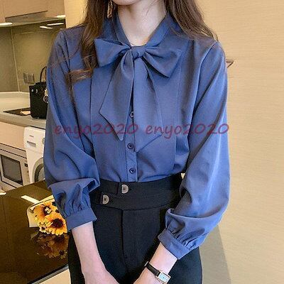 ブラウス レディース トップス シャツ シフォン 長袖 リボン リボンタイシフォンブラウス