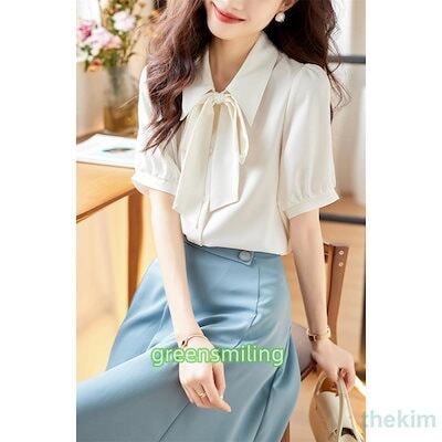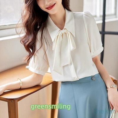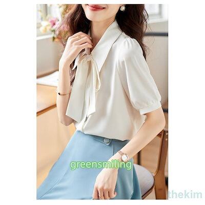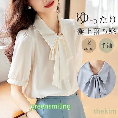 ブラウス 半袖 レディース シャツ トップス 切替 おしゃれ カットソー リボン 流行り Tシャツ 柔らかい チュニック ゆったり