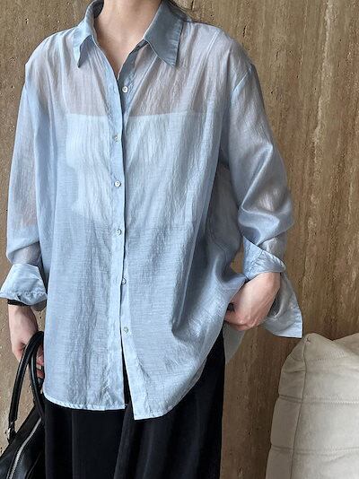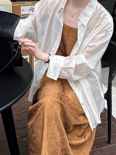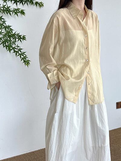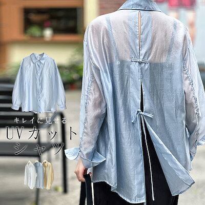 UVカット シャツ レディース 長袖 シアーシャツ ロング トップス 春 夏 薄手 シアー ロングシャツ 羽織り 羽織もの バックリボン スリット シャツブラウス きれいめ おしゃれ 無地 ゆったり