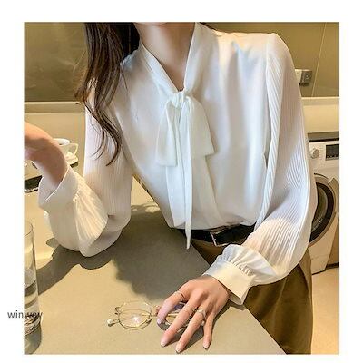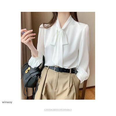 ブラウス レディース 長袖 きれいめ 40代 オシャレ ブラウス シャツブブラウス 長袖 トップス リボンネック オフィス 大人 通勤 ゆったり