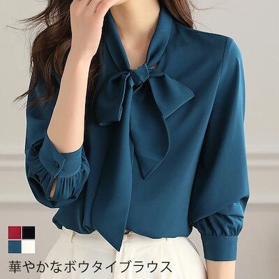 ブラウス ボウタイ レディース 長袖 オフィス フォーマル ボウタイブラウス 黒 白 きれいめ 秋 春 トップス シャツブラウス シャツ リボンタイ 長袖ブラウス フォーマルブラウス ジャケットイン