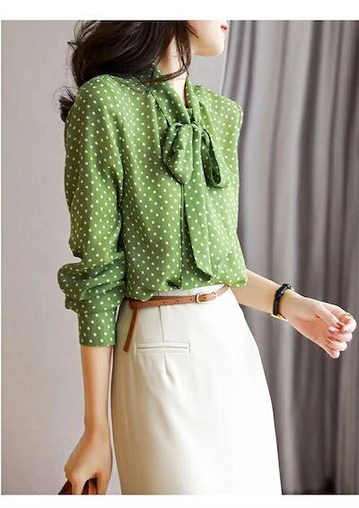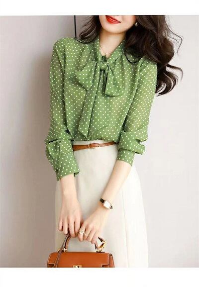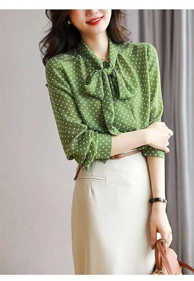 ボウタイブラウス シャツ ブラウス キレイめ レディース 長袖 とろみシャツ ドット柄 フォーマル セレモニー リボン付き ブラウス トップス スーツインナー オフィス フォーマル 通勤 仕事 OL