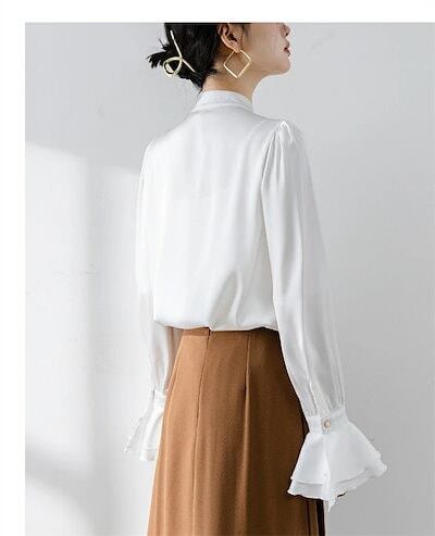 ボウタイブラウス シャツ ブラウス キレイめ レディース 長袖 とろみシャツ フォーマル フリル シャツ セレモニー リボン付き ブラウス トップス スーツインナー 無地 オフィス フォーマル 通勤