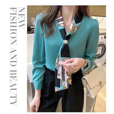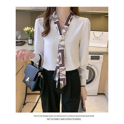 迅速な出荷 韓国 ブラウス レディース ビッグリボン 長袖 ボリュームスリーブ 綿混 レディース ボウタイ