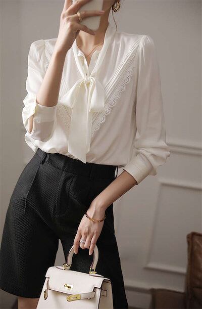 ブラウス シャツ インナー レディース トップス スーツインナー ビジネススーツ 白シャツ 長袖 ボウタイ リボン リボンタイ ボウタイリボン レース オフィスカジュアル フォーマル 上品 きれいめ