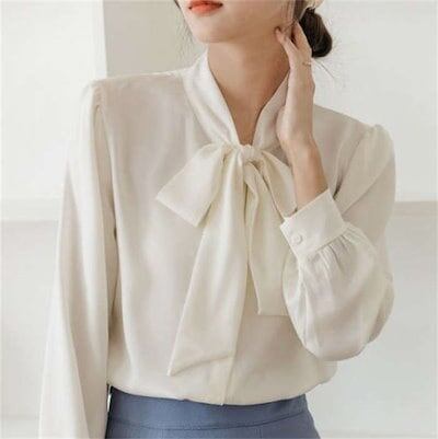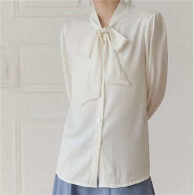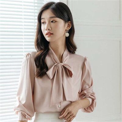 ブラウス レディース トップス シャツ 白シャツ ボウタイカラー インナー スーツインナー ビジネススーツ 春夏 秋冬 長袖 きれいめ ボウタイ リボン リボンタイ ボウタイリボン 洗濯可 シーズン着