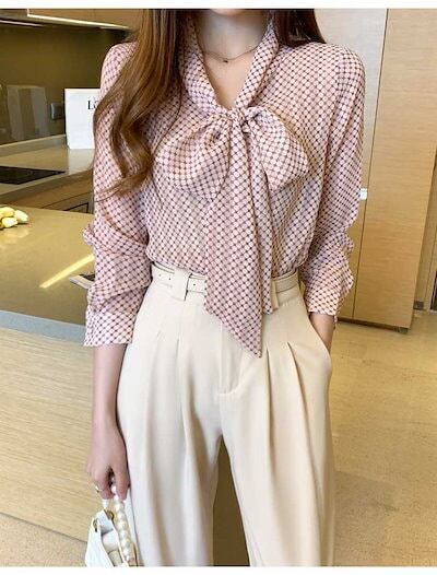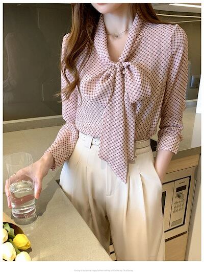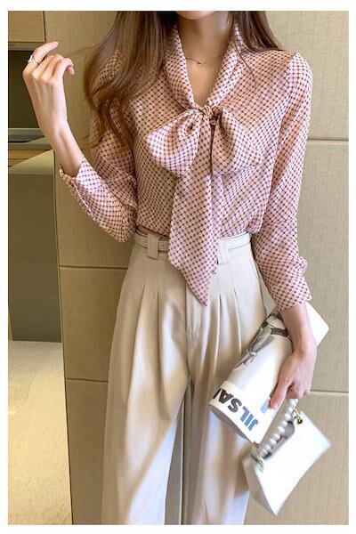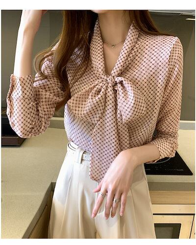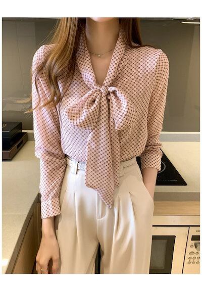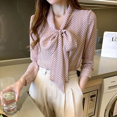 ブラウス ボウタイブラウス レディース ドット柄 シフォンシャツ トップス 春 夏 秋 長袖シャツ シフォン きれいめ ボウタイ リボン付き 大人可愛い ゆったり 通勤 通学 OL オフィス カジュア