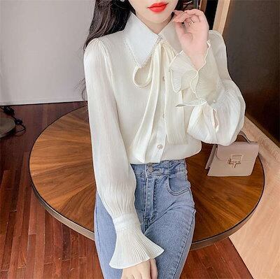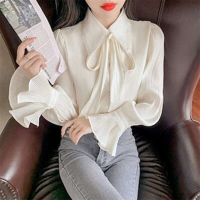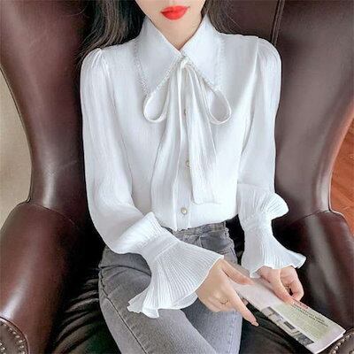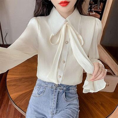 ブラウス シャツ インナー レディース トップス スーツインナー ビジネススーツ 白シャツ ボウタイブラウス 春夏 秋冬 長袖 ボウタイカラー スタンダードカラー ボウタイ リボン リボンタイ ボウ