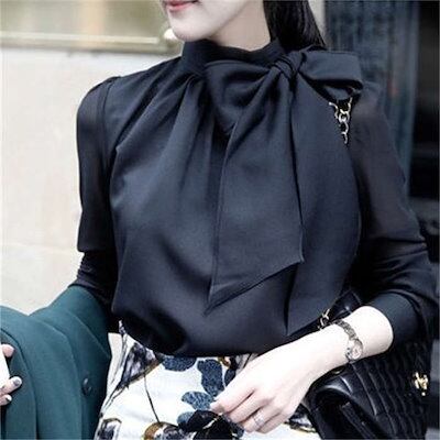 ブラウス シャツ インナー レディース トップス ボウタイカラー スーツインナー ビジネススーツ 白シャツ 春夏 秋冬 長袖 ボウタイ ボウタイブラウス リボン リボンタイ ボウタイリボン 上品 きれ