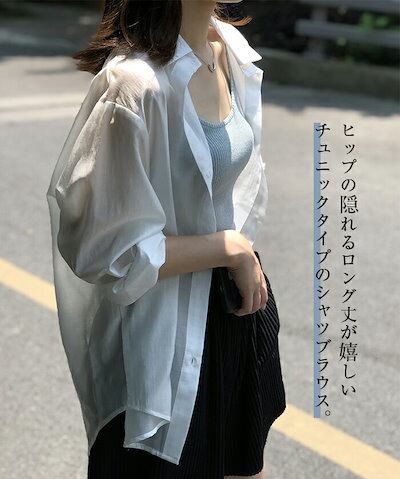 シアーシャツ シャツ レディース ブラウス トップス 羽織 長袖 シアー シースルー バックリボン ライトアウター 羽織 カーディガン 透け感 紫外線対策 UVカット 春 夏 シアー