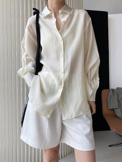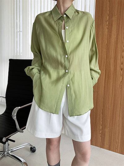 シャツ レディース 長袖 春 夏 春夏 シャツブラウス レディースシャツ 長袖シャツ 無地 透け感 薄手 シアー リボン 可愛い カワイイ 若見え エレガント レイヤード 着回し UV対策 日焼け止め