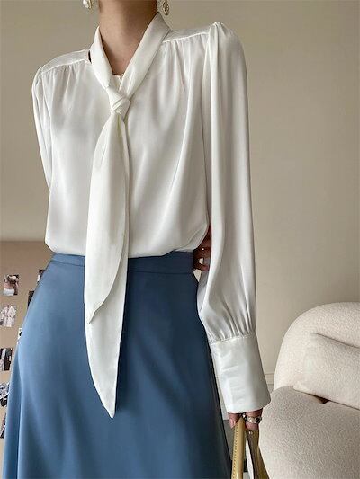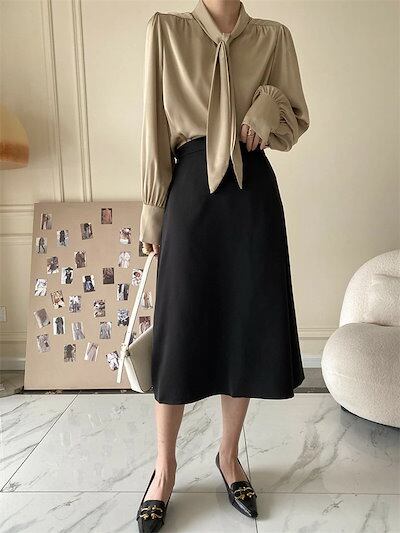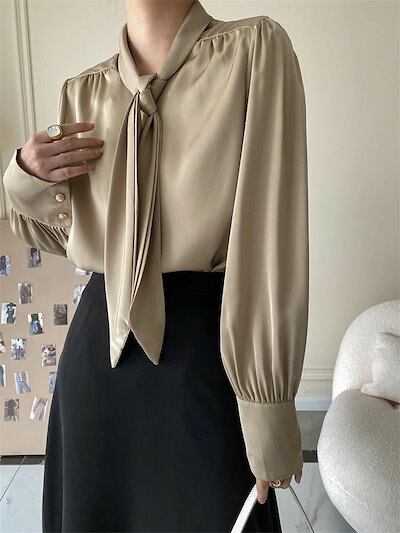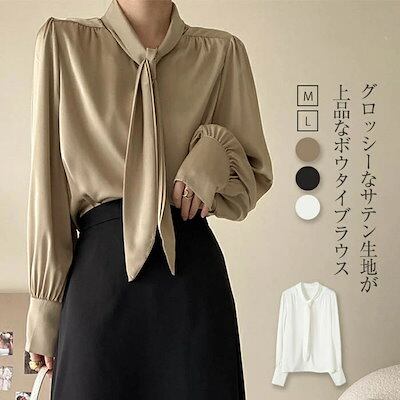 サテン ブラウス ボウタイ フォーマル ブラウス レディース コーデ 秋 春 オフィス 長袖 リボン トップス シャツ ブラウス レディース 長袖 スーツ インナー 春 夏 秋 シンプル 体型カバー