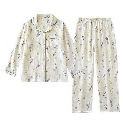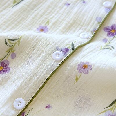 ガーゼ パジャマ レディース ルームウェア パンツ 花柄 総柄 春 秋 ガーゼコットン キーネック フリル チェック 春秋 長袖 綿 部屋着 セットアップ 2点セット ナイト 寝間着 寝巻き 上下セッ