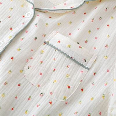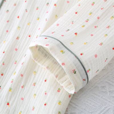 ガーゼ パジャマ レディース ルームウェア パンツ 春 秋 ガーゼコットン vネック 総柄 ドット 水玉 春秋 長袖 ダブルガーゼ 2重ガーゼ 綿 部屋着 セットアップ 2点セット ナイト 寝間着 寝