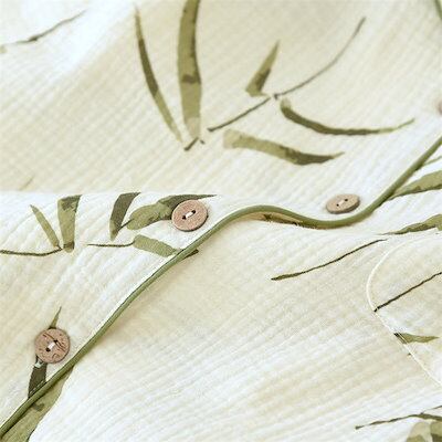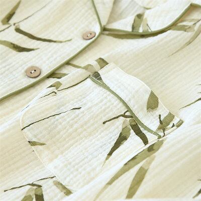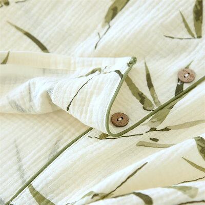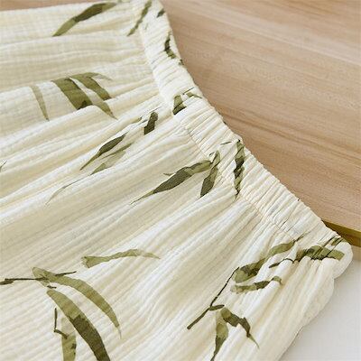 ダブルガーゼ 2重ガーゼ パジャマ レディース ガーゼ ルームウェア 長袖 トップス ロングパンツ 部屋着 セットアップ 2点セット 寝間着 総柄 タケ 竹 春 秋 冬 寝巻き 女性 上下セット 大人