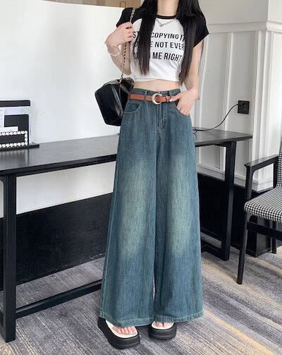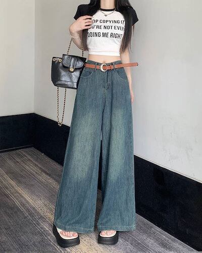ジーンズ デニムスカーチョ レディース ワイドパンツ デニム デニムパンツ きれいめ 股上深め 大きいサイズ 春夏秋冬 フレアパンツ ゆったりシルエット おしゃれ ロングパンツ 無地 ボトムス 体型カ