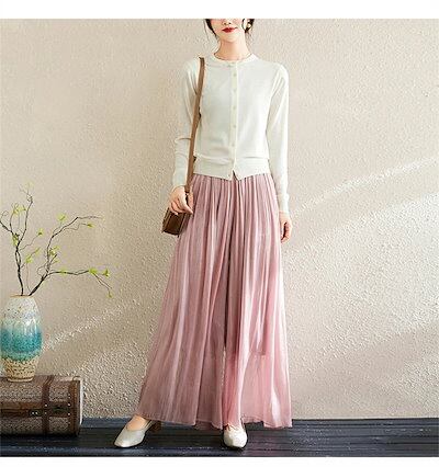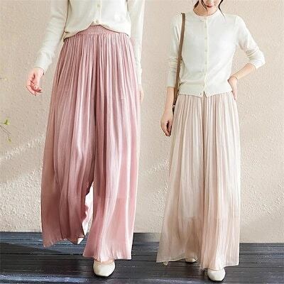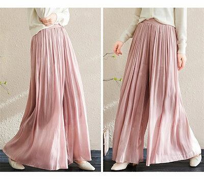 ワイドパンツ レディース 夏 冷感 春夏秋冬 ボトムス パンツ ウェストゴム 涼感素材 レディース長ズボン ガウチョパンツ ロング丈 ゴム 春夏 無地 体型カバー 脚長 ハイウエスト 薄手 ゆったり