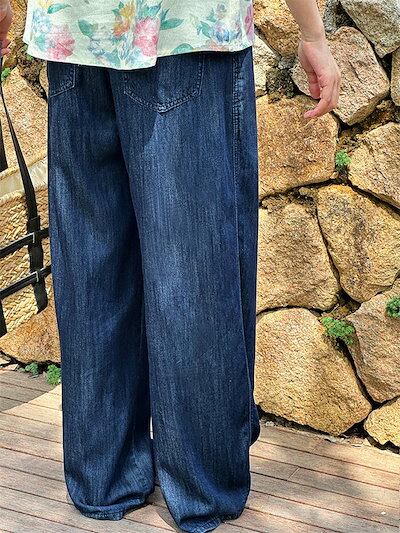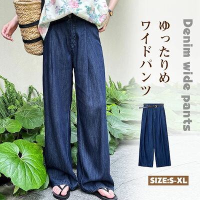 デニムパンツ レディース ワイドパンツ ウエストゴム デニム 接触冷感 春 夏 ひんやり UVカット 無地 薄手 涼しい ロング丈 ストレートパンツ ジーンズ 体型カバー ボトムス ズボン ゆったり