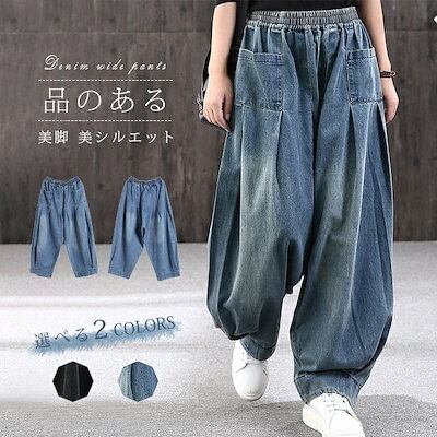 ワイドパンツ バルーンパンツ レディース きれいめ 股上深め ジーンズ 贅沢 デニム 大きいサイズ 春夏秋冬 スカーチョ おしゃれ 綿麻 前垂らし ひんやり ロングパンツ 無地 ボトムス 体型カバー