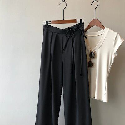 タックワイドパンツ フレアパンツ ワイドパンツ レディース バギーパンツ イージーパンツ ロングパンツ 春 秋 夏 スラックス ロング丈 ストレート ハイウエスト 上品 きれいめ 美脚 おしゃれ ゆっ