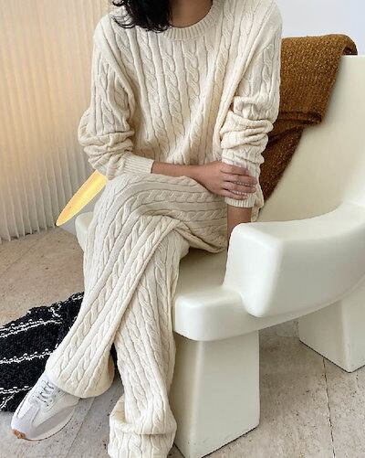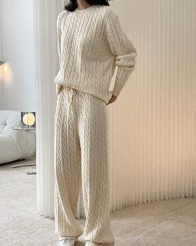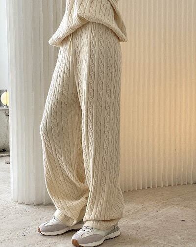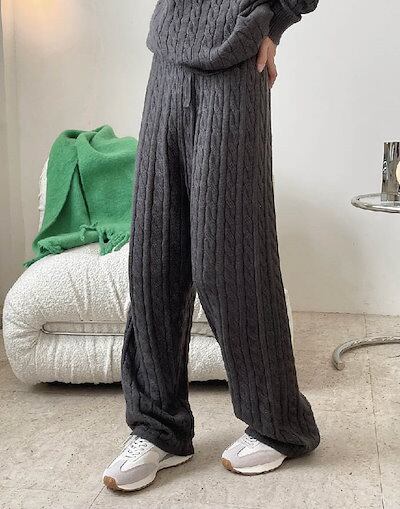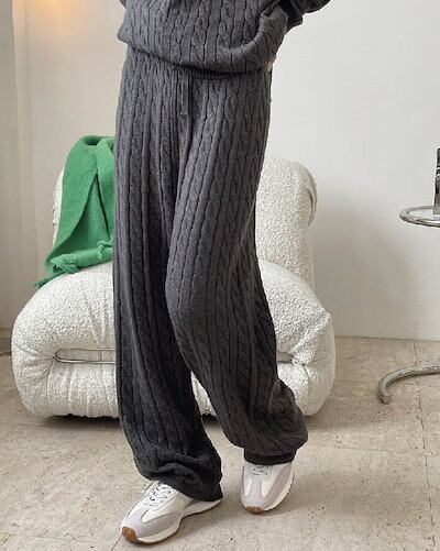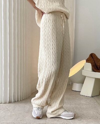 ワイドパンツ レディース ニットパンツ 春 秋 ニット パンツ ケーブル編み ロング丈 レディース ガウチョ パンツ ニットパンツ 無地 キレイめ ハイウエスト 美脚 ケーブル編みニット ロングパン