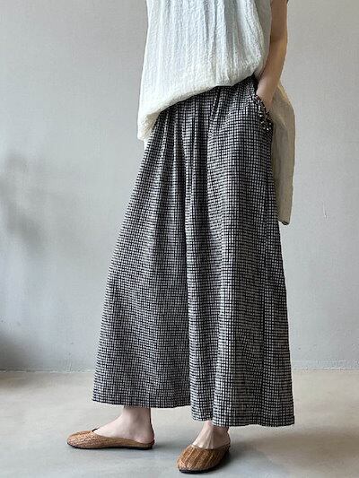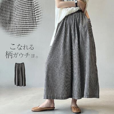 ワイドパンツ レディース チェック柄 秋 春 夏 スカンツ ロング丈 体型カバー おしゃれ ゆったり カジュアル ナチュラル 着痩せ ボトムス 春物 春 夏 秋 ゆる 大きいサイズ 薄手 ワイドシルエ