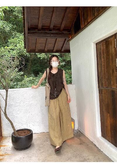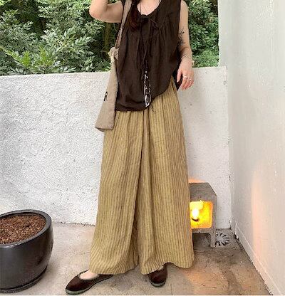 ワイドパンツ レディース ロング丈 ストライプ柄 綿麻 リネン 秋 春 夏 スカンツ ガウチョパンツ 体型カバー おしゃれ ゆったり ナチュラル カジュアル 着痩せ ボトムス ゆる 大きいサイズ ワイ