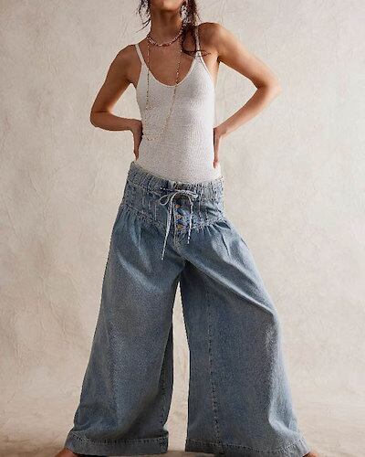 ワイドパンツ デニム レディース 春 秋 フレアパンツ ガウチョパンツ ロング丈 デニムパンツ 体型カバー おしゃれ ゆったり カジュアル ナチュラルカジュアル 着痩せ ボトムス ゆるっと 大きいサイ