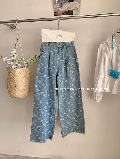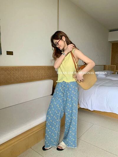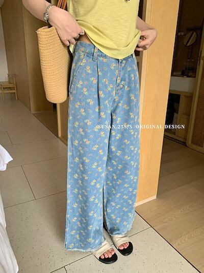 ワイドパンツ レディース デニムパンツ 花柄 ガウチョパンツ パンツ 春 秋 スカーチョ ガウチョ ワイドパンツ スカンツ ロング丈 パンツ 体型カバー 大きいサイズ ボトムズ 春 夏 着痩せ 美脚