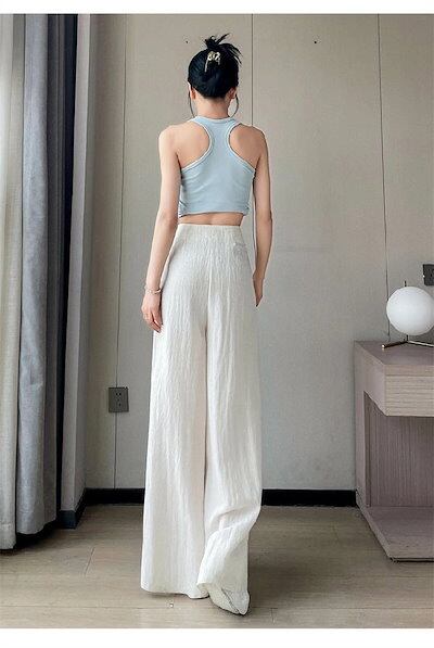 ワイドパンツ リネン レディース イージーパンツ ひんやり 涼しい 薄手 UVカット ガウチョパンツ ロング 麻混 接触冷感 さらさら 春 夏 ガウチョ ボトムス リラックス ウエストゴム 大きいサイ