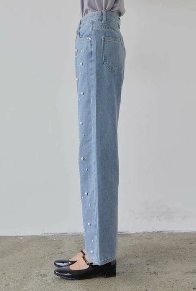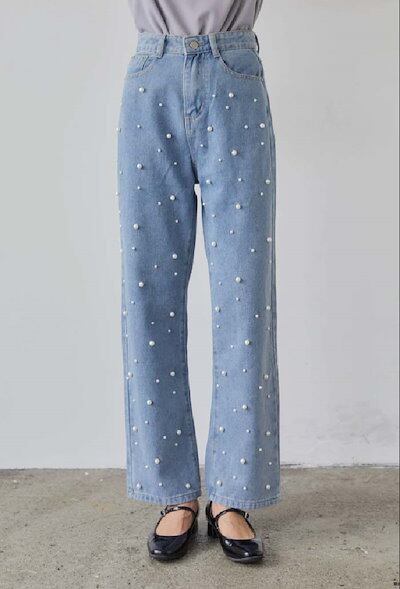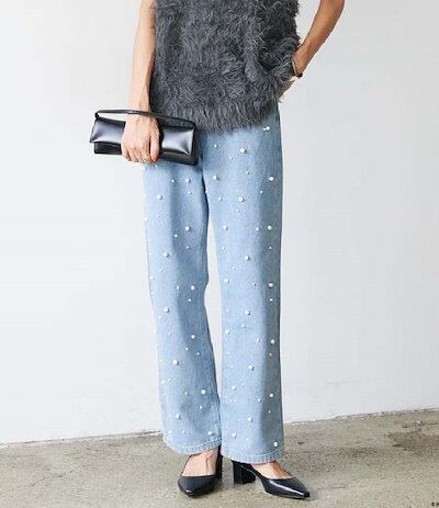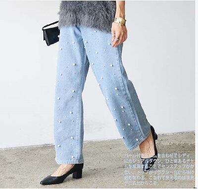 ワイドパンツ デニム レディース 春 秋 パール付き ガウチョパンツ ワイドデニム デニムパンツ 体型カバー ジーンズ ハイウェスト 薄手 デニム 華奢見え おしゃれ ゆったり カジュアル ナチュラル