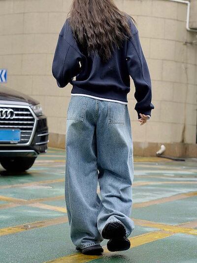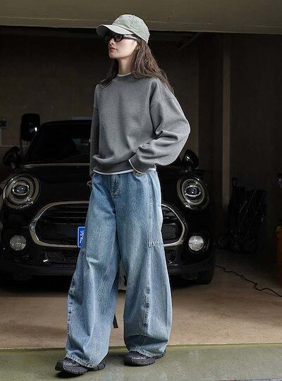 ワイドパンツ デニム レディース 春 秋 サルエルパンツ ロング丈 デニム パンツ 華奢見え 体型カバー おしゃれ ゆったり カジュアル ナチュラルカジュアル 着痩せ ボトムス ゆる 大きいサイズ