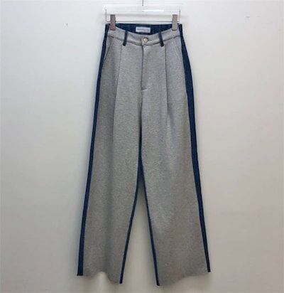 ワイドパンツ レディース 春 秋 異素材切り替え ロング丈 デニム スウェット バイカラー 華奢見え 体型カバー おしゃれ ゆったり カジュアル ナチュラルカジュアル 着痩せ ボトムス 春物 春 秋