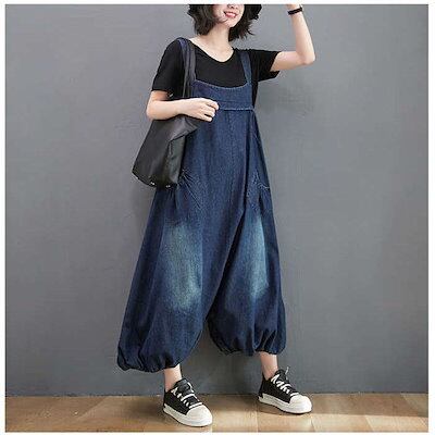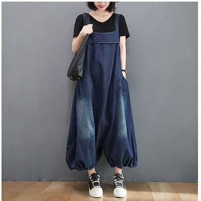 サロペット オールインワン レディース デニムパンツ ハーレムパンツ サリエルパンツ 春 秋 マタニティ きれいめ 着痩せ 大きいサイズ カジュアル おしゃれ 体型カバー ゆったり 女性 お呼ばれ