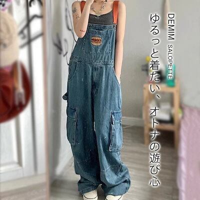 サロペット パンツ デニム パンツ オールインワン レディース ワイドパンツ カーゴパンツ 春 秋 きれいめ 着痩せ 大きいサイズ カジュアル おしゃれ 体型カバー ゆったり 女性 お呼ばれ 可愛い