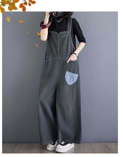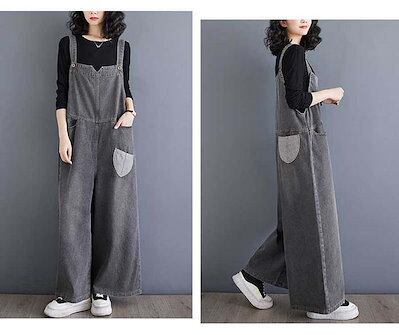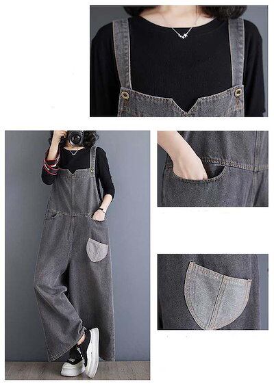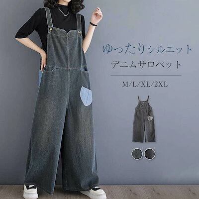 サロペット デニムパンツ オールインワン レディース ワイドパンツ 春 秋 マタニティ きれいめ 着痩せ 大きいサイズ カジュアル おしゃれ 体型カバー ゆったり 女性 お呼ばれ 可愛い 無地 お