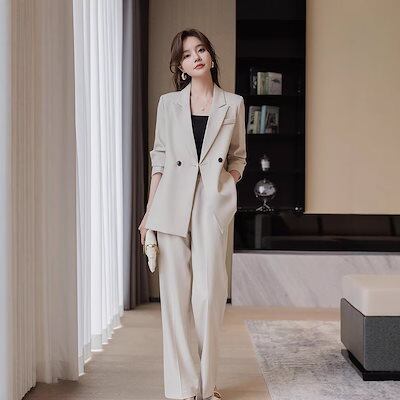 春人気 髙品質 スーツ セットアップ レディース 長袖 フォーマル ビジネススーツ/ワイドパンツ二点セットママ スーツ入園式 入学式 卒園式ジャケット スーツ ジャケット 大きいサイズ