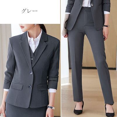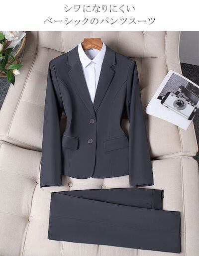 パンツスーツ スーツ レディース パンツ 2セット ベーシック セレモニー オケージョン 洗える セットアップ ビジネス リクルート オールシーズン 春 夏 秋 冬 通勤 OL 黒 ネイビー グレー