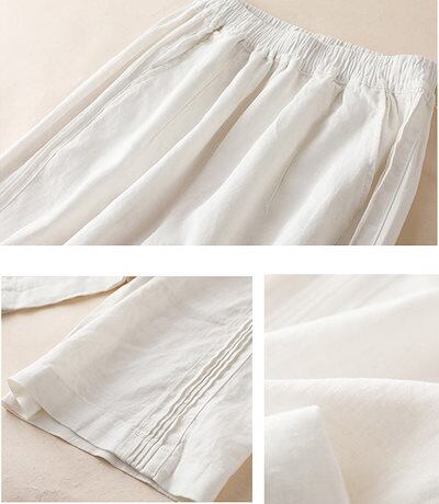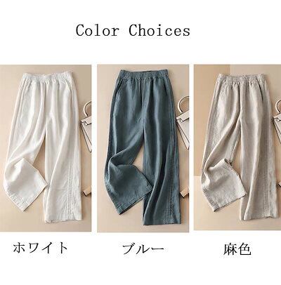 ワイドパンツ レディース 綿 麻 リネンパンツ 春 夏 タック ウエストゴム ハイウエスト ロング パンツ ストレート ポケット付き コットン ゆったり オフィス ボトムス ワイド 無地 ホワイト ブ