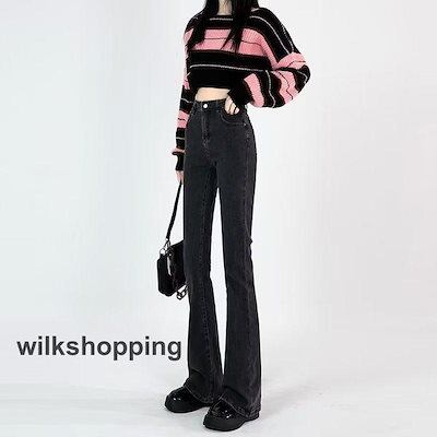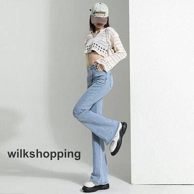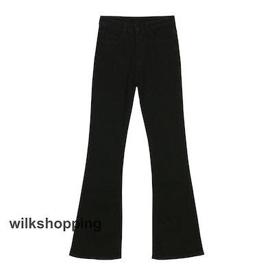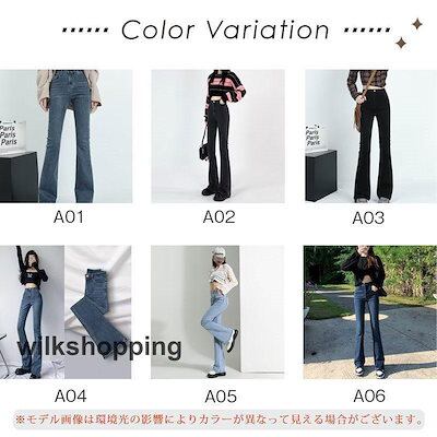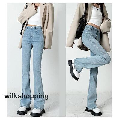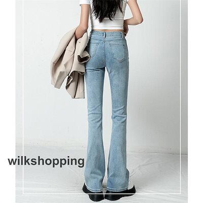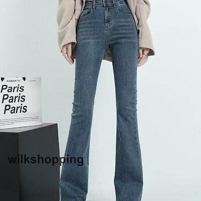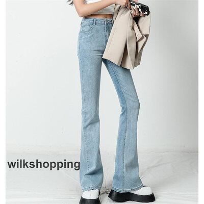 デニムパンツ レディース ジーンズ フレアパンツ ボトムス ハイウエスト ロング丈 カシュアル 体型カバー ゆったり 美脚 春秋 細身 ストレッチ