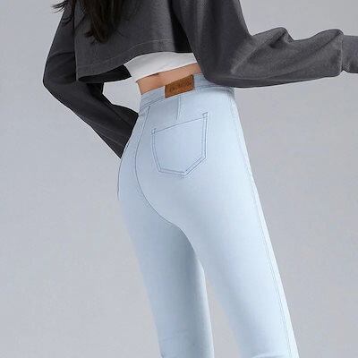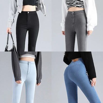 脚長効果!スキニーデニムパンツ ストレッチスキニージーンズ レディースハイウエスト夏 ヒップアップ痩身9分丈パンツ