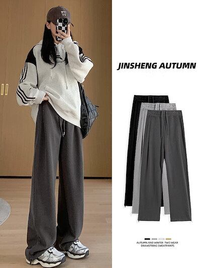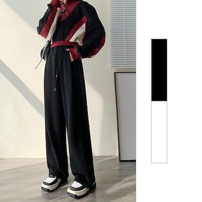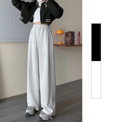 ワイドパンツ 韓国ファッション 着痩せ ゆったり ドローストリング スウェットパンツ ハイウエスト ワイドパンツ レディース ロングパンツ