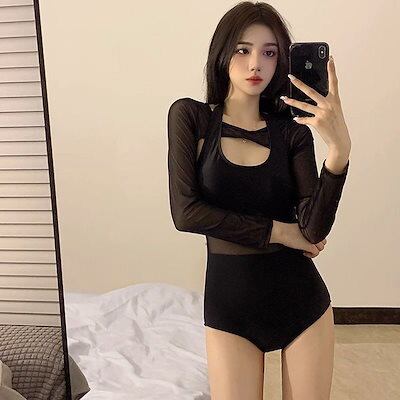 2023新作水着レディース温泉ワンピース遮肉保守レース長袖水着レディース