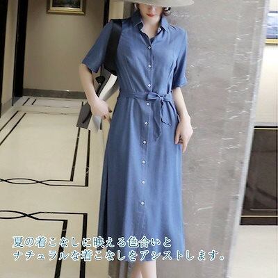 【毎日厳選 】 2024新作 シンプル 大きめサイズ 高級感 シャツワンピース uvカット 半袖 夏服 接触冷感 リゾートワンピース ゆったり ロングワンピース 夏 冷感 紫外線対策 ヘビロテ