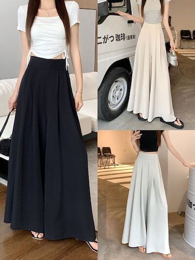 2023最新ワイドパンツ レディース 夏 涼感 速乾 オーバーサイズ 体型カバー ひんやり ロング フレア パンツ 低身長 高身長 ポケット付き かっこいい!スラックスパンツ