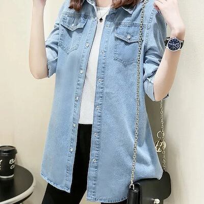 シアーシャツ 【本日限定】デニムシャツ シャツ ブラウス レディース トップス長袖 ブラウス トップス 秋 春 ゆるブラウス デザイ感 人気 着痩せ Tシャツ 柔らか カジュアル 可愛い