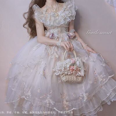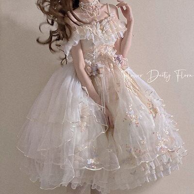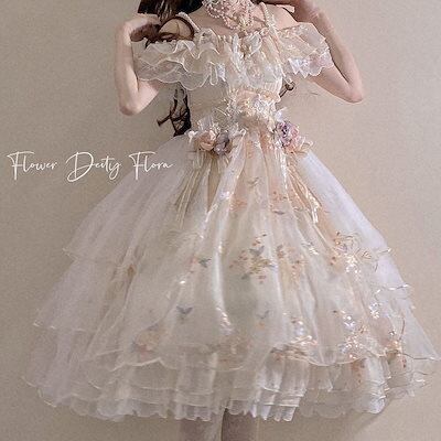 ロリータスカート花神芙洛拉のロリータの塔のスカート刺繍の夏のロリータの塔の花の嫁のスカート華麗で甘いJSKワンピース